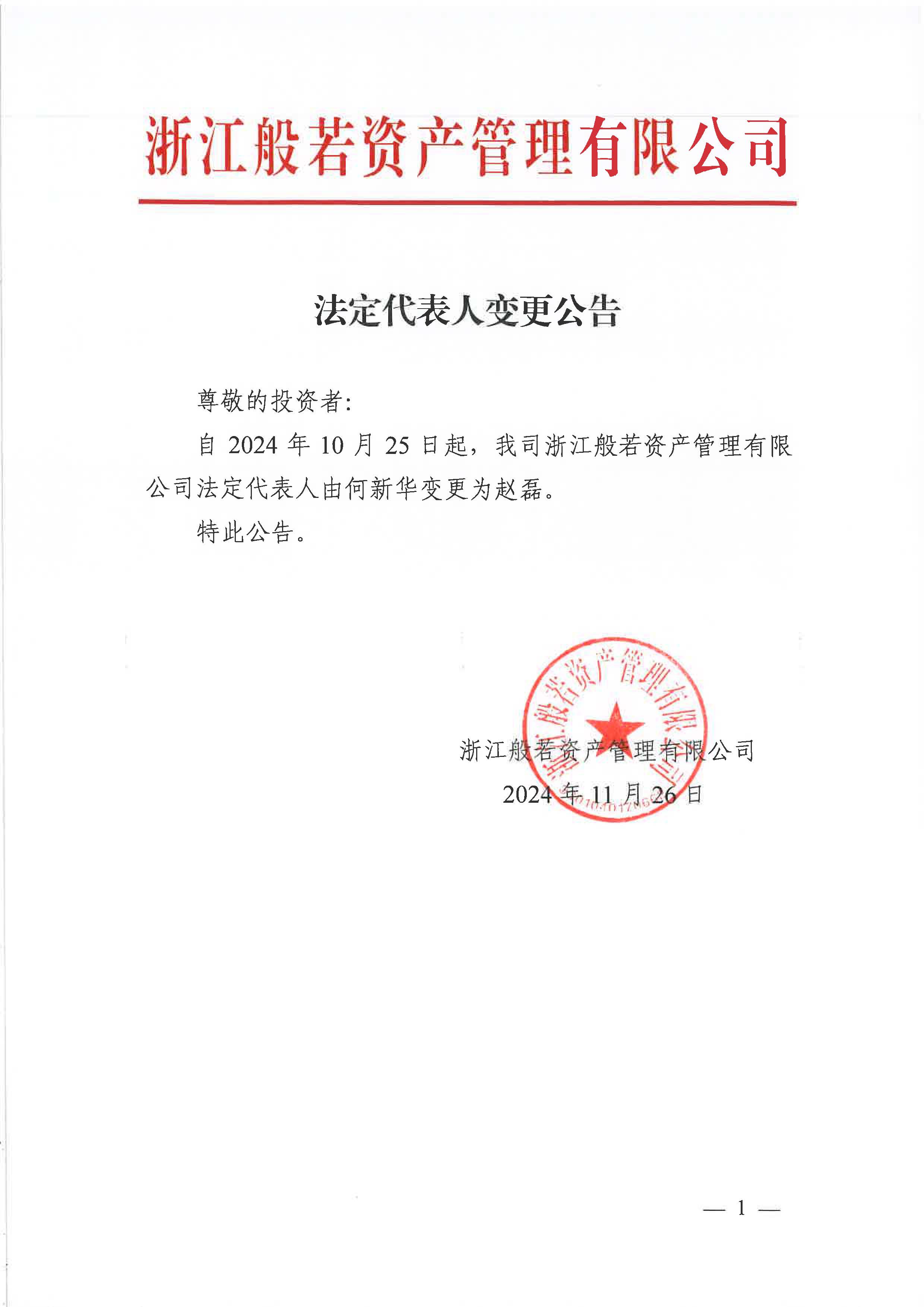 法定代表人变更公告